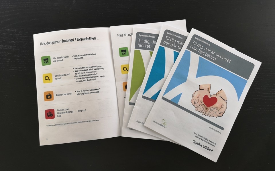 Hjerteafdelingen på Sygehus Lillebælt og Syddansk Sundhedsinnovation udviklede symptomhåndbøgerne i et brugercentret udviklings- og testforløb.